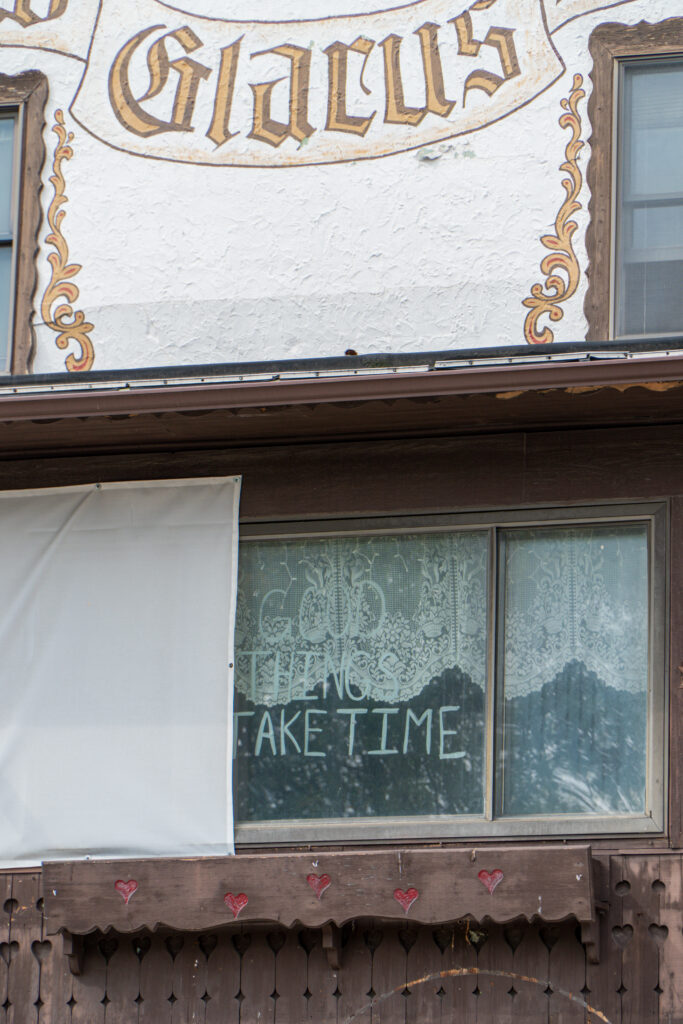 What appears to be an unassuming small town quickly becomes more than meets the eye. The blend of wooden chalets with gabled roofs, Fraktur-style fonts painted on businesses and the swinging wooden signs instantly transport you into a quaint Swiss town.