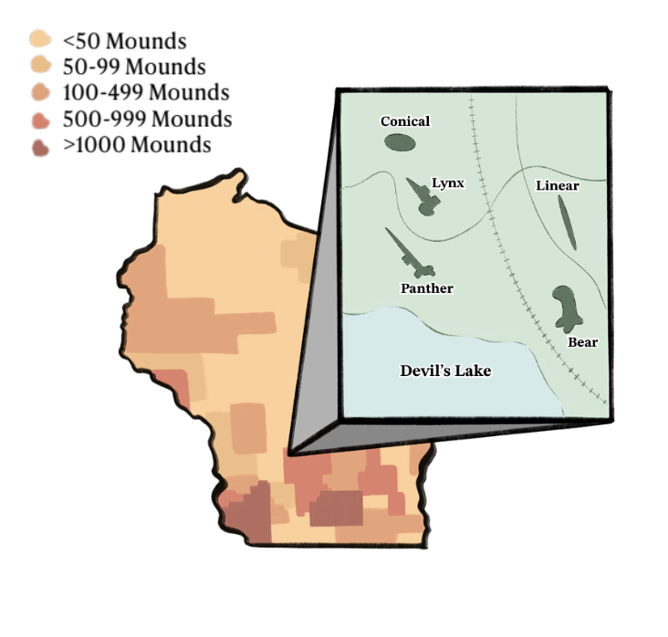 Effigy mounds are large, elevated piles of earth created by predominantly Ho-Chunk moundbuilders, serving as burial grounds, places of religious worship and maybe even territory markers, according to the Devil’s Lake visitor guide.