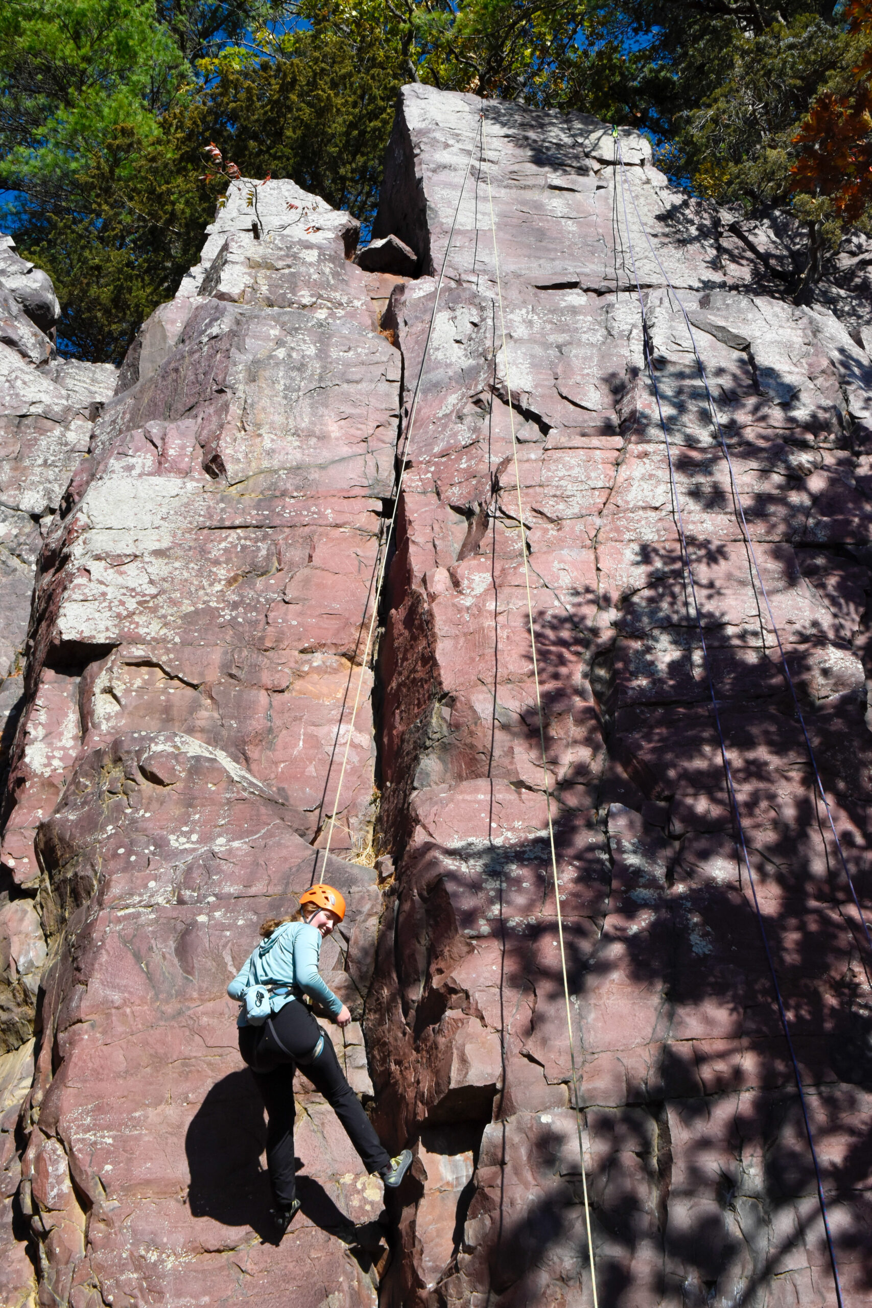 Feature photo: A rock climber takes on one of the trails at Devil’s Lake State Park. Photo by Lenah Helmke