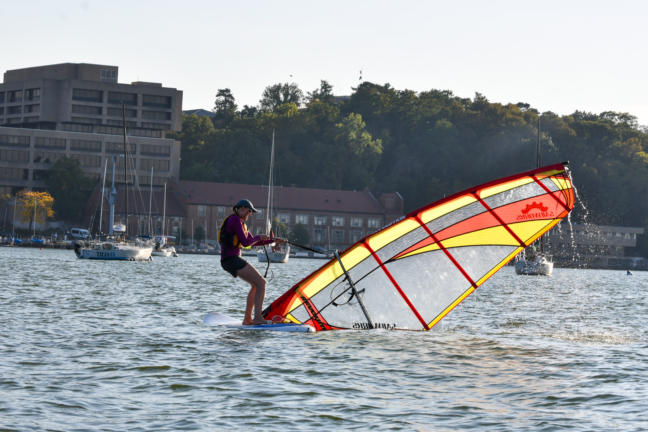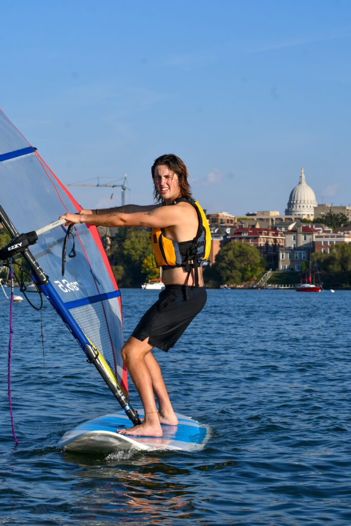 Like Matzinger, other Wisconsinites found their love for windsurfing thanks to educational programs like Wisconsin Hoofers. One newly devoted windsurfer and commodore of the Hoofers Sailing Club is Max Bublik, a first-year graduate student at UW–Madison. He learned to windsurf this past summer once the lake opened up, and it was one of the first activities he tried since joining last year.