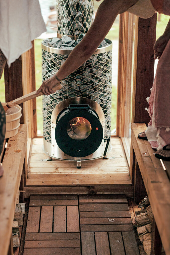 Typically, a true sauna experience involves alternating between time in the steam of the sauna and a dip in the lake or river. That opportunity for a natural cold plunge is an additional homage to traditional sauna and bathing rituals.